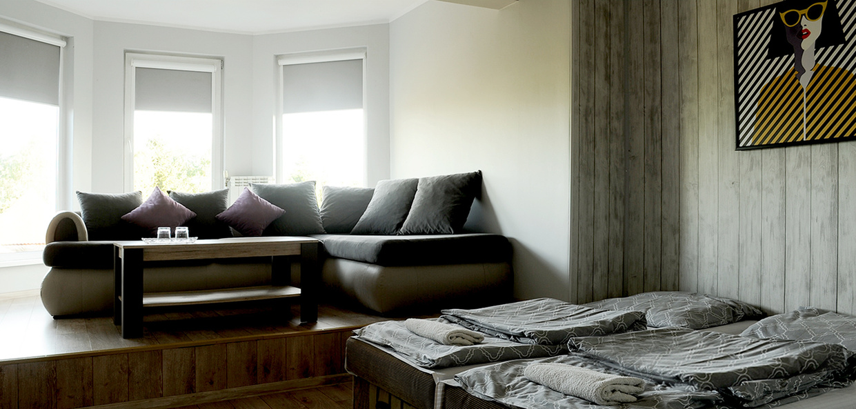 Gościniec Ponderosa oferuje także bazę noclegową, zapewniając nocleg dla 19 osób w komfortowych pokojach, wyposażonych w łazienkę i szereg technologicznych udogodnień.