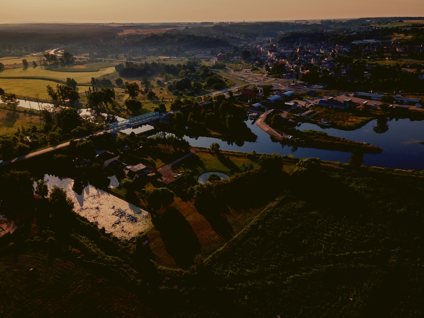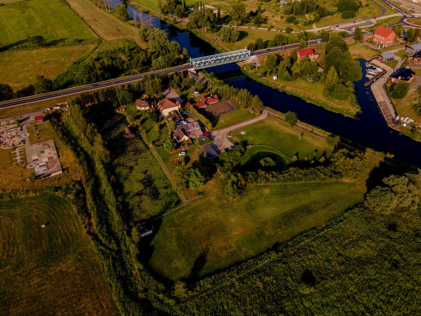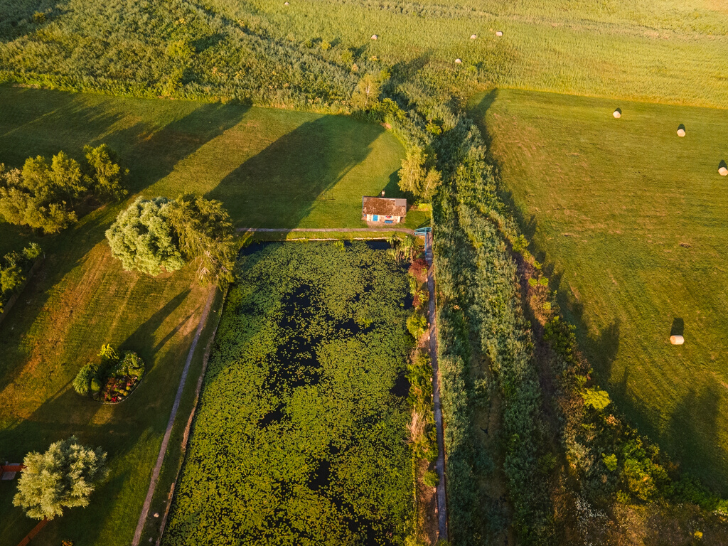 w Dolinie Noteci, pośród łąk nad rzeką Noteć.